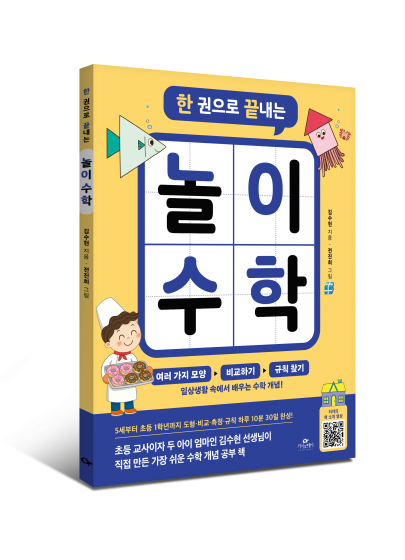 한 권으로 끝내는 놀이 수학은 유·초등 학습 분야 베스트셀러 한 권으로 끝내는 한글 떼기, 한 권으로 끝내는 받아쓰기를 펴낸 김수현 선생님이 직접 만든 수학 개념 공부 책입니다. 다년간 여러 학년의 담임을 맡았던 초등 교사로, 두 아이에게 수학을 가르치는 엄마로 김수현 선생님은 늘 고민했습니다. ‘도형, 비교, 측정, 규칙 등 서로 너무 달라서 더 어려운 수학 개념을 쉽게 알려주려면 어떻게 해야 할까?’ 도형, 비교, 측정, 규칙은 아이들이 수 세기와 덧셈 뺄셈 외에 처음으로 접하게 되는 수학 개념입니다. 초등학교 수학에서 다루는 5대 영역인 수와 연산, 도형, 측정, 규칙성, 자료와 가능성중에서 3개의 영역에 걸쳐 있어 그만큼 중요합니다. 하지만 수 세기와 덧셈 뺄셈과는 달리 단순 연습만으로는 내용을 따라가기가 힘듭니다. 개념을 충분히 이해하고 응용해서 문제를 풀어야 하는데, 이때 가장 큰 역할을 하는 것이 일상생활과의 접점입니다. 집에서 천천히 주위만 둘러봐도 시계는 원, TV는 사각형 등 각기 다른 도형이 보이고, 컵에 물 한 잔을 따라 마시면서도 양의 많고 적음을 느끼며, 길거리를 걸으며 마주하는 보도블록 무늬에서 규칙을 발견하는 것처럼 말입니다. 그래서 연구를 거듭한 결과, 직접 일상생활 속에서 배우는 수학 개념이라는 커리큘럼을 계획해 교재로 만들었습니다. 하루 10, 이 책과 함께하면 도형부터 규칙까지 수학 개념이 가장 쉬워집니다!